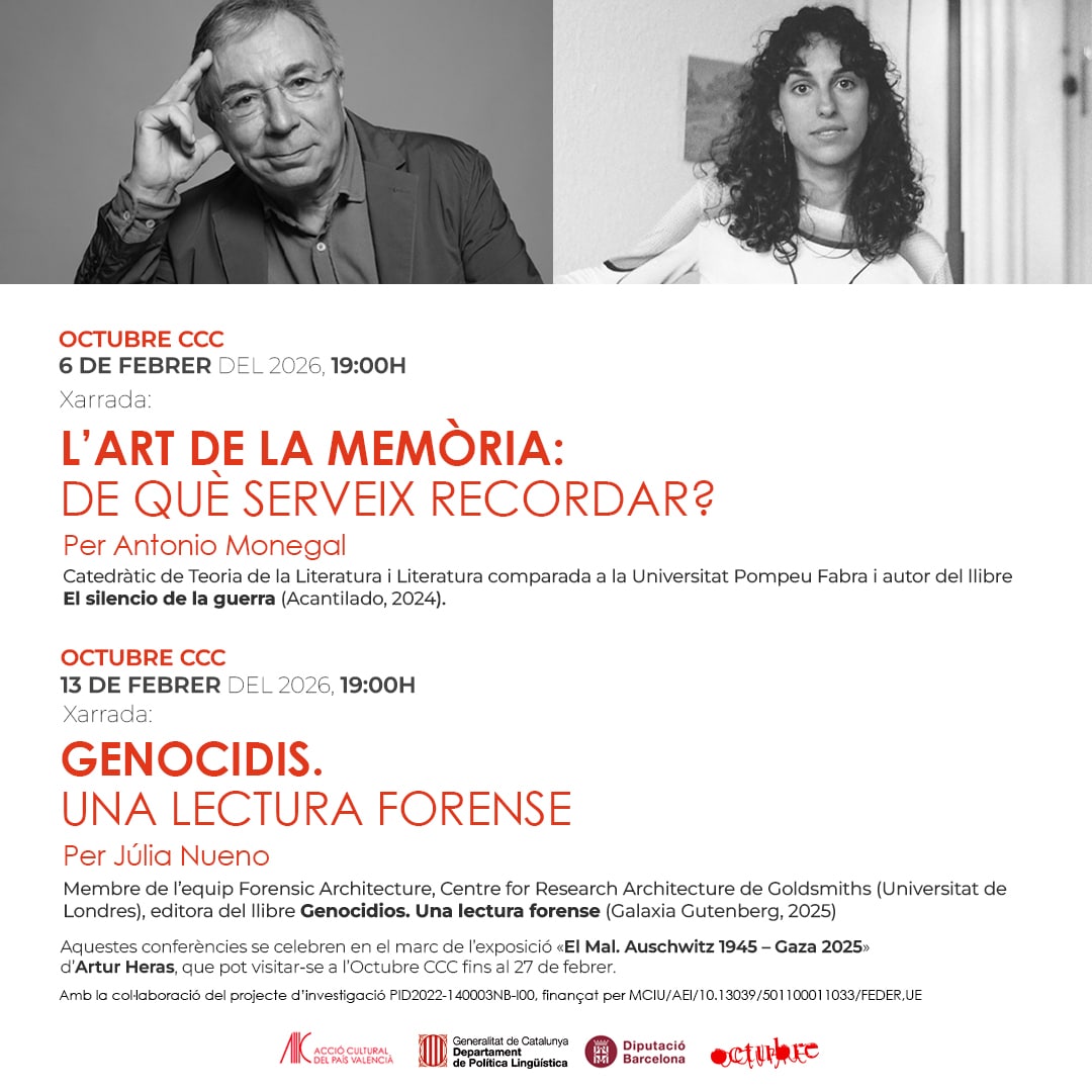 Aquesta conferència se celebra en el marc de l’exposició «El Mal. Auschwitz 1945 – Gaza 2025» d’Artur Heras, que pot visitar-se a l’Octubre CCC fins al 27 de febrer.
